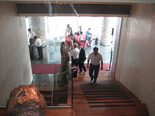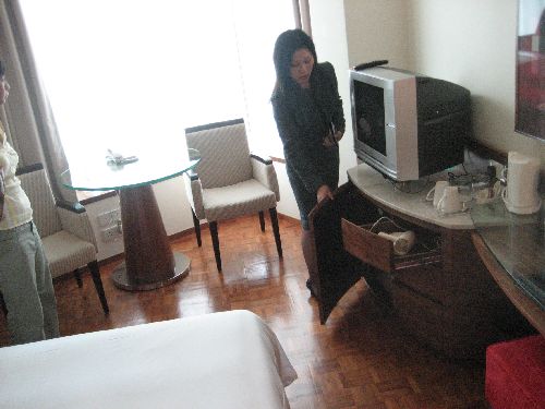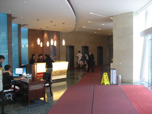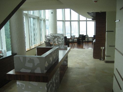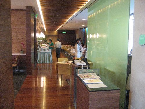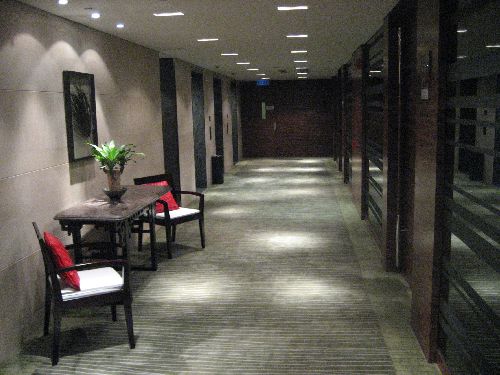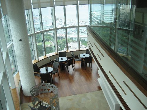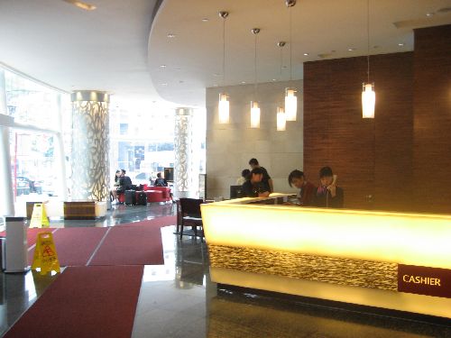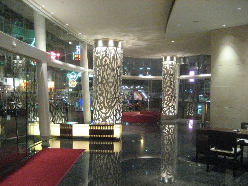 Just across from the hotel in the black based building in the picture is